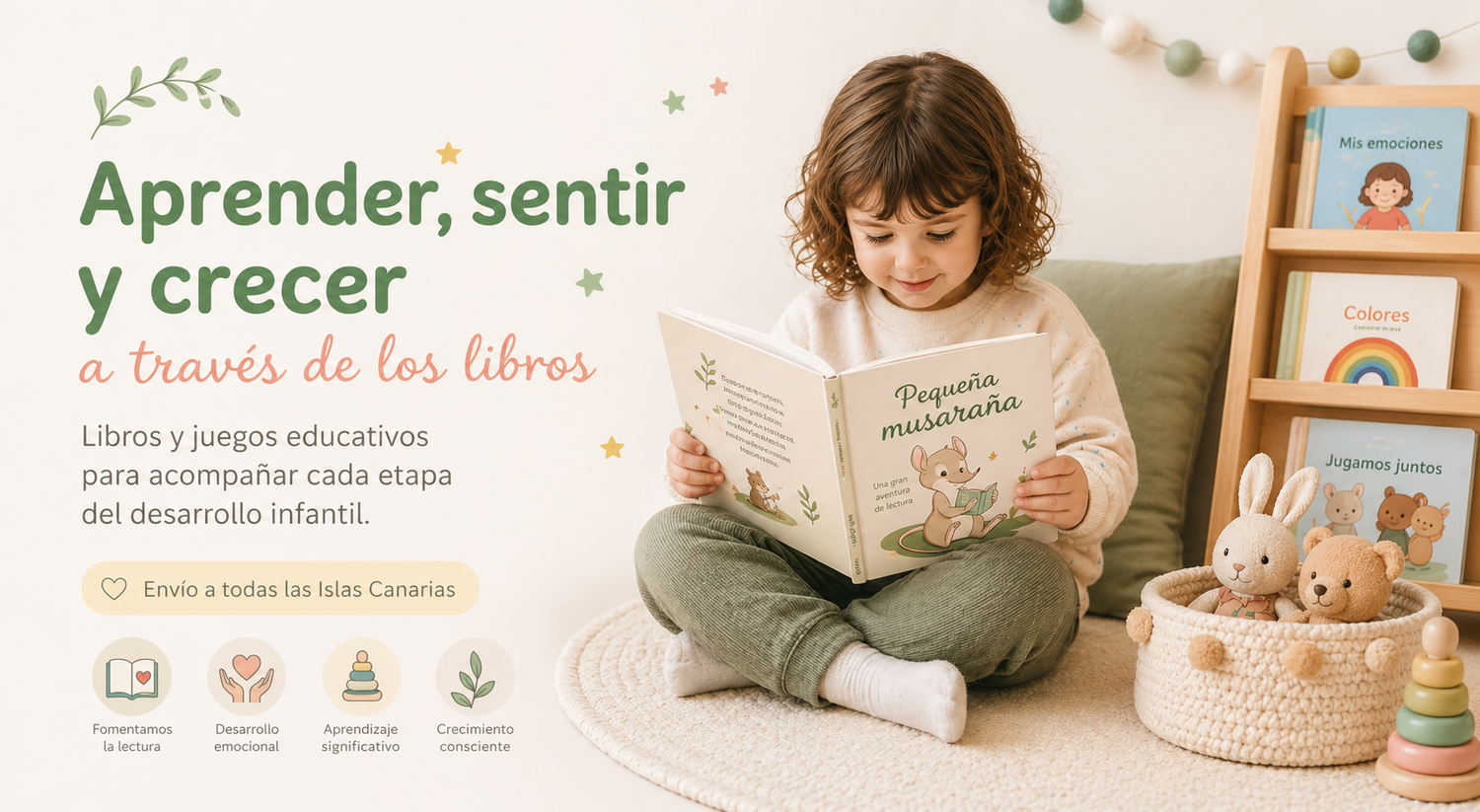 Acompañamos a familias y educadores para una crianza respetuosa y adaptada para cada etapa, con un asesoramiento continuo y cercano de juegos educativos y libros para trabajar emociones y mucho más. Envío a todas las Islas Canarias.