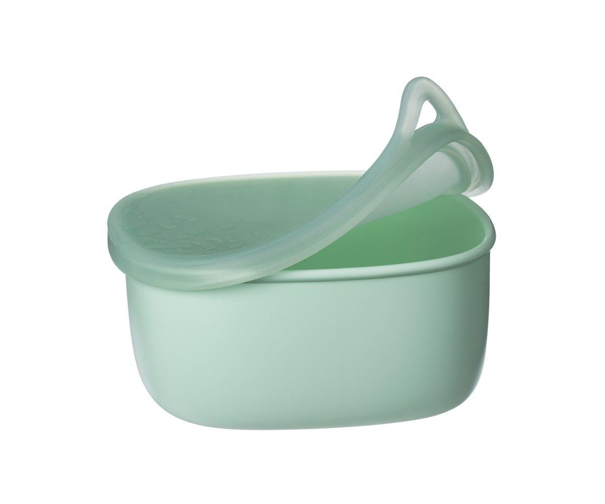 La pestaña de silicona flexible en la esquina permite un agarre fácil para sacarla de la caja de almuerzo B.Box y poder abrir la tapa.