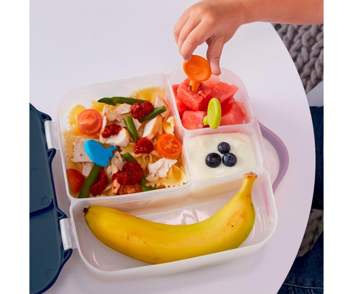 Set de 3 unidades de mini tenedores para disfrutar con frutas, verduras y carne de forma limpia y segura. Sus exclusivas púas redondeadas son ideales para pinchar alimentos y comer de manera segura. El mango grande facilita el agarre y ofrece control al comer. Además, su diseño compacto hace que quepan perfectamente en la mayoría de fiambreras y depósitos B.Box, ya sea para la escuela o para llevar contigo a cualquier lugar.
