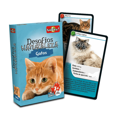 Desafíos Naturaleza te permitirá conocer los gatos más sorprendentes. Descubre las especies más raras y apuesta por las características más fuertes de tu gato, con el objetivo de reunir todas las cartas del juego y ganar. ¿Preparado/a para asumir el reto?
