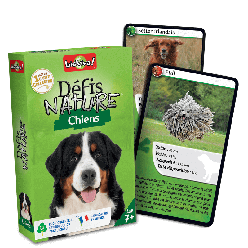 Desafíos Naturaleza te permitirá conocer los perros más sorprendentes. Descubre las especies más diverti das y apuesta por las características más fuertes de tu perro, con el objetivo de reunir todas las cartas del juego y ganar. ¿Preparado/a para asumir el reto?