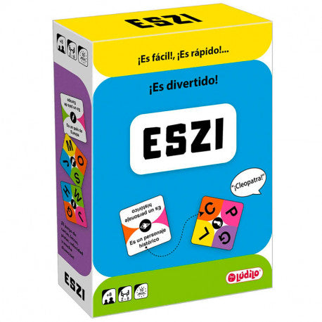 Rápido!, es una bebida con gas que empiece por “C”. Es una orden que le das a un perro que empiece por “S” Fácil, ¿verdad? Ahora ya sabes cómo jugar a ESZI. ESZI viene con 75 cartas de letras y 120 cartas de pista. ¡ESZI es velocidad! Sé el primero en deshacerse de tus cinco cartas de letras.