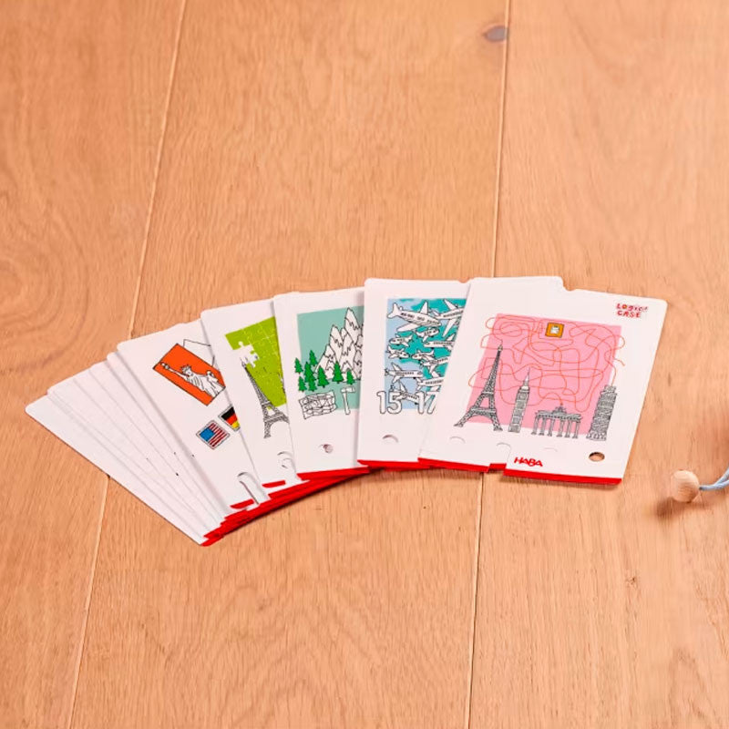 Un set de ampliación con 77 desafiantes acertijos con la temática de vacaciones y viajes para utilizar exclusivamente con el set inicial o juego base.