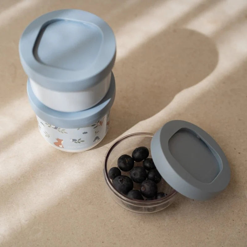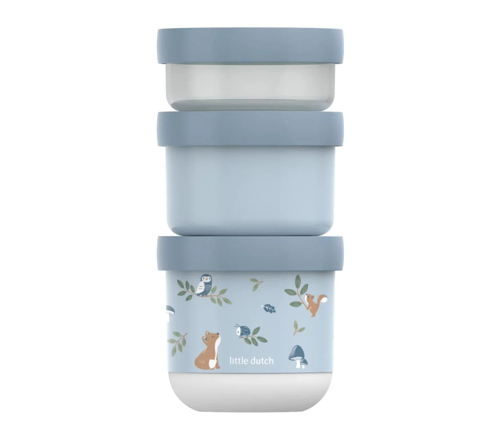 La Caja de Snack Apilable Mio 3 Forest Friends de Little Dutch incluye tres contenedores de 100 ml, 175 ml y 275 ml, que puedes usar por separado o apilar para llevar todo lo necesario en un solo formato compacto y cómodo. Perfecta para el colegio, salidas al parque o excursiones.