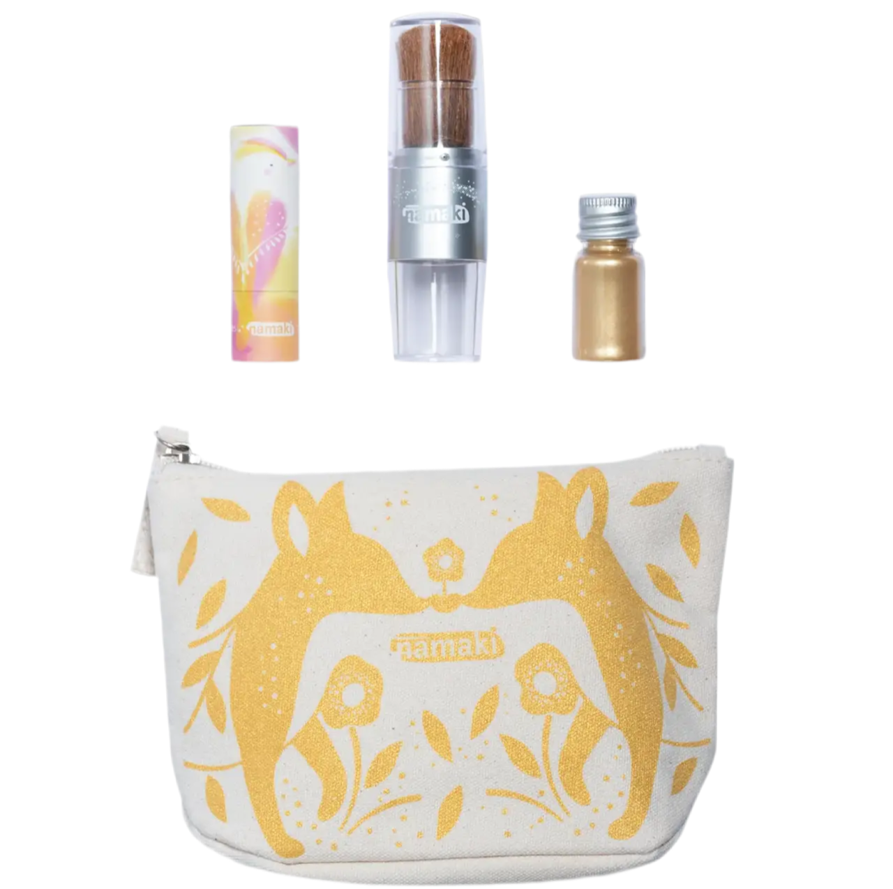 Namaki Estuche Oro Pincel mágico, polvos brillantes y labial