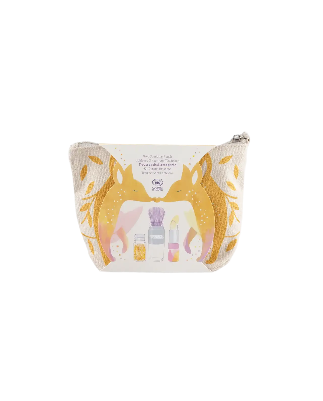 El Estuche Oro Pincel Mágico+ Polvos+ Labial Namaki es una bonita bolsa de algodón orgánico que contiene todos los productos que necesitas para iluminar la temporada festiva. Contiene dos elementos esenciales de la gama de maquillaje: un pincel dorado brillante para aplicaciones luminosas y un bálsamo labial con sabor a vainilla para mantener tus labios suaves y perfumados.