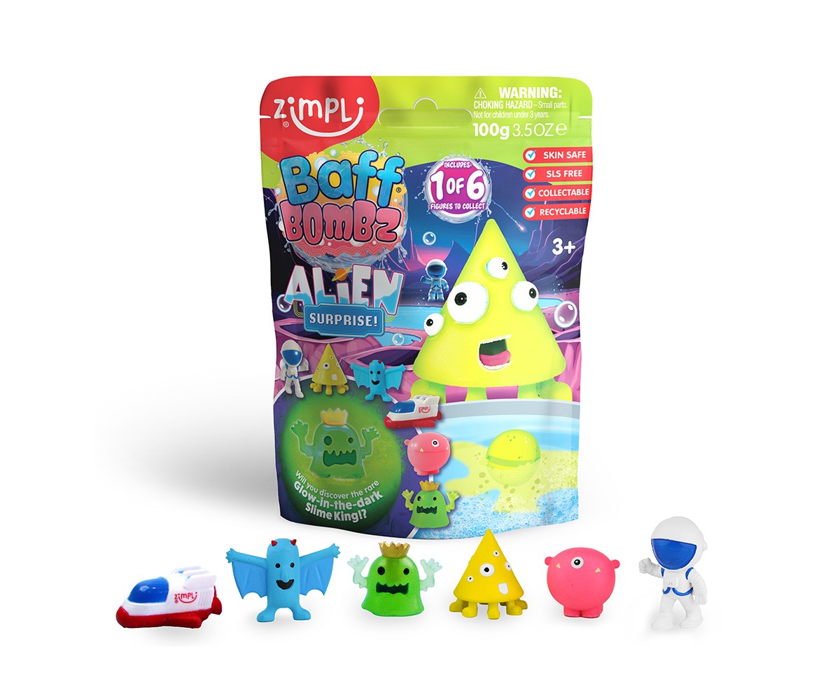 Haz que la hora del baño sea aún más emocionante con la Bomba de Baño Surprise Alien de Zimpli Kids. Una bomba efervescente que no solo llena la bañera de color y burbujas, ¡sino que también esconde una figura sorpresa en su interior!